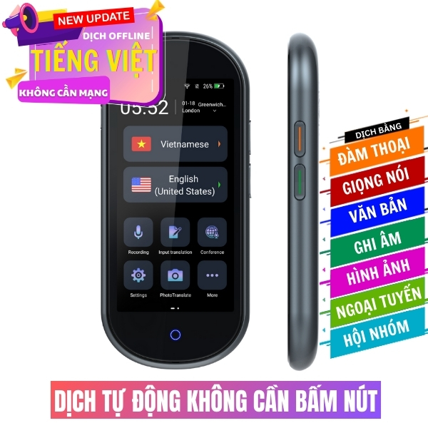 Từng đường nét đều được chăm chút kỹ lưỡng - từ bề mặt nhám chống bám vân tay đến kiểu dáng bo cong dễ cầm nắm - mang lại cảm giác sang trọng, chắc tay và tiện dụng. Đây không chỉ là một thiết bị phiên dịch, mà còn là minh chứng cho sự tinh tế, đẳng cấp và khả năng sáng tạo của công nghệ Việt Nam dành riêng cho người Việt.
